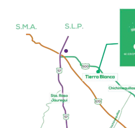 Ubicado en la carretera estatal 500 Qro – Chichimequillas, a 7 minutos del Parque Industrial Querétaro, y a tan solo 20 minutos del Aeropuerto Intercontinental de Querétaro. A 20 min de Zibata