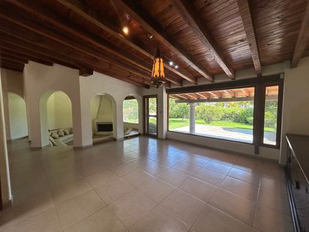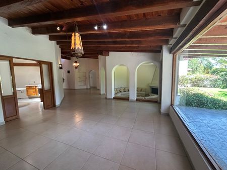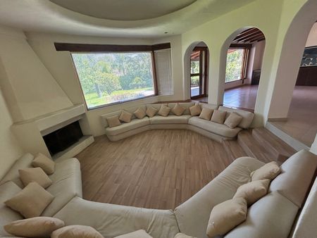 Cuenta con un amplio y grande jardín justo frente al campo de golf con acceso directo al mismo. Donde toda la casa puede disfrutar de una panorámica Vista inigualable. Atractivo para buen proyecto de Inversion.